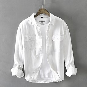 رجالي قميص قميص كتان قميص غير رسمي زر حتى القميص قميص قطني سهل عطلة ستايل هاواي أسود أبيض بني أخضر كم طويل Lapel الربيع الخريف ملابس جيب