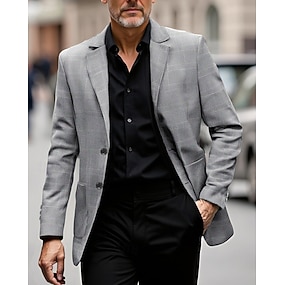 رجالي سترة عمل حفلة كوكتيل حفلة الزفاف موضة كاجوال الربيع الخريف بوليستر مطبوعات غرافيك جيب Buttons مريح صدر فردي سترة رياضية رمادي