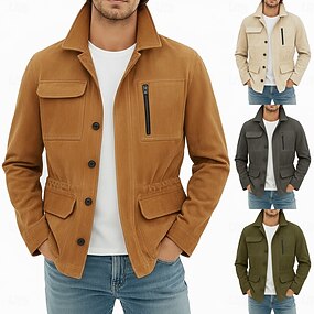 رجالي سترة من جلد الغزال الصناعي سترة الصوف جاكيت ضد الرياح سترة من جلد الغزال البني فضفاض كاجوال / يومي جاكيت ضد الرياح بقع جيب الشتاء ربيع & الصيف لون الصلبة عتيق موضة مرتفعة عادية أخضر جاكتس