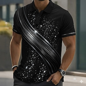 رجالي هندسي قميص الجولف كم قصير قمصان البولو قميص بياقة كاجوال الأماكن المفتوحة ملابس الرياضة ملابس البيت طباعة ثلاثية الأبعاد أسود