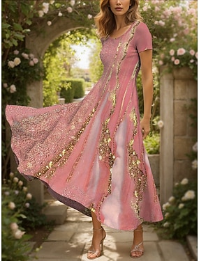 نسائي فستان قصير فستان مزين بالترتر فستان كوكتيل فستان أنيق موضة الحديث حفلة ليلية حفلة كوكتيل عطلة نهاية الاسبوع عادي سهل كم طويل V رقبة أسود أبيض وردي بلاشيهغ ذهبي الربيع الخريف