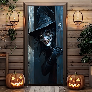 ديكورات باب الهالوين أغطية أبواب الهالوين نسيج باب الساحرات ستائر باب خلفية لافتة باب للباب الأمامي حفلة عطلة مزرعة ديكور داخلي وخارجي لوازم