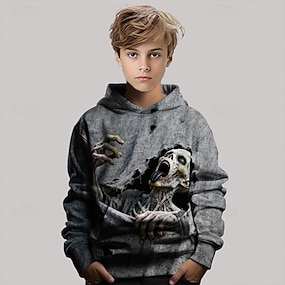 عيد الرعب للصبيان 3D الرسم هوديي كم طويل الربيع الخريف موضة أناقة الشارع أطفال 4-12 سنة مع قبعة الأماكن المفتوحة فضفاض مناسب للبس اليومي عادي