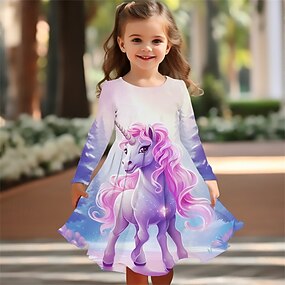 الفتيات 3D آحادي القرن فستان كم قصير الصيف الربيع عطلة مناسب للبس اليومي مناسب للعطلات أميرة جميل حلو أطفال 4-12 سنة لباس غير رسمي طول الركبة عادي
