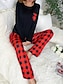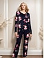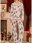 بيجامات نسائية لعيد الميلاد، طقم بيجامات دافئ ونشط، مطبوع عليه رسومات بابا نويل، قميص بأزرار، بنطلون، عيد الميلاد، رأس السنة الجديدة، أكمام طويلة، ياقة، أسود، أبيض، أحمر، ربيع، خريف، شتاء