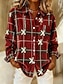 عيد الميلاد المجيد نسائي قميص منقوش عتيق أنيق كاجوال كم طويل قبعة القميص قمصان عادية مناسب للبس اليومي بقع أحمر أزرق أرجواني أخضر الخريف الشتاء