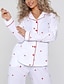 بيجامات نسائية لعيد الميلاد، طقم بيجامات دافئ ونشط، قميص بأزرار، بنطلون، إجازة عيد الميلاد، كم طويل، ياقة، أبيض، ربيع، خريف، شتاء، مقاس عادي
