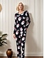 بيجامات نسائية لعيد الميلاد، طقم بيجامات دافئ ونشط، بنطلون بأزرار، مطبوع عليه زهور، بأكمام طويلة، ياقة دائرية، أبيض وأحمر، ربيع وخريف وشتاء، مقاس عادي