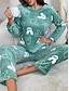 هدايا عيد الميلاد بيجامات نسائية ملابس نوم طقم بيجامات دافئ ونشط وأزياء بنطلون عطلة عيد الميلاد المنزل بأكمام طويلة ورقبة دائرية برتقالية وأخضر ربيع خريف شتاء