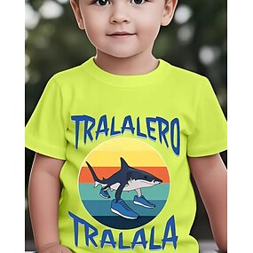 تي شيرت مطبوع للأولاد من ترالا قرش برسومات كرتونية بأكمام قصيرة وقميص عصري صيفي عصري وشخصية رائعة