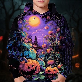 عيد الرعب للصبيان 3D قرع هوديي كم طويل الربيع الخريف موضة أناقة الشارع أطفال 4-12 سنة مع قبعة الأماكن المفتوحة فضفاض مناسب للبس اليومي عادي