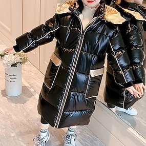 أطفال للفتيات بطانة فرو سترة البخاخ لون الصلبة موضة الأماكن المفتوحة قطن معطف ملابس خارجية 4-13 سنة الخريف شامبانيا