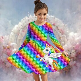 الفتيات 3D آحادي القرن فستان بدون كم الصيف الربيع عطلة مناسب للبس اليومي مناسب للعطلات أميرة جميل حلو أطفال 4-12 سنة لباس غير رسمي فستان شكل حرف A طول الركبة عادي