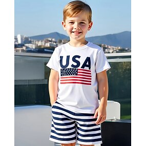 يوم الاستقلال الأمريكي للصبيان 3D الرسم علم تي شيرت كنزة مطبوعة كم قصير الصيف الربيع موضة أساسي أطفال 4-12 سنة رقبة العمل الأماكن المفتوحة فضفاض مناسب للبس اليومي عادي