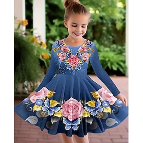 عيد الفصح الفتيات 3D روز الرسم فستان كم طويل الصيف الربيع عطلة مناسب للبس اليومي مناسب للعطلات أميرة جميل حلو أطفال 4-12 سنة لباس غير رسمي فستان شكل حرف A طول الركبة عادي