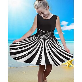 الفتيات 3D مخطط فستان بدون كم الصيف الربيع عطلة مناسب للبس اليومي مناسب للعطلات أميرة جميل حلو أطفال 4-12 سنة لباس غير رسمي فستان شكل حرف A طول الركبة عادي