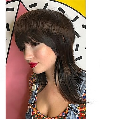 باروكات صناعية مموجة بطول الكتف مع غرة للنساء، عصرية للاستخدام اليومي للحفلات التنكرية