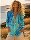 قمصان هاواي للنساء قمصان جارية عصرية غير رسمية جرافيك هندسي قمصان طويلة بأكمام طويلة ياقة رقعة أزرار طباعة تناسب الجسم عطلة عمل يومية زرقاء فاتحة ملابس صيفية للعيد