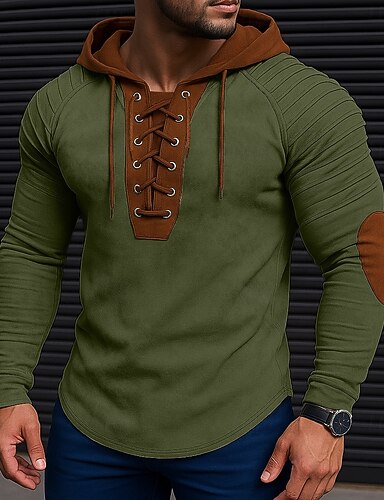 رجالي تي شيرت تي الأعلى قميص طويل الأكمام كم طويل مع قبعة ربيع & الصيف كل الفصول ألوان متناوبة مطوي نحيف موضة مصمم رياضي رباط بقع عطلة شارع فضفاض أسود رمادي كاكي تي شيرت للرجال