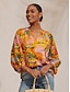 قميص نسائي من الكتان مثل القابلة للتنفس خفيفة الوزن جرافيك هندسي أنيق عصري كاجوال طويلة الأكمام بأكمام أسقف يملك ياقة وقبة عادية لقضاء العطلات مطبوعة باللون الأسود والبنفسجي والبرتقالي خريف وشتاء