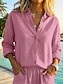 نسائي قميص قمصان قطنية كتان زرر بلوزة لون الصلبة أساسي كاجوال كم طويل أسقف قبعة القميص قمصان عادية عطلة مناسب للبس اليومي بقع Buttons وردي بلاشيهغ أزرق كاكي الخريف الشتاء