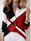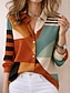 نسائي قميص الرسم هندسي ألوان متناوبة عتيق أنيق أساسي كم طويل أسقف قبعة القميص قمصان عادية مناسب للبس اليومي مناسب للعطلات أحمر برتقالي الصيف الربيع