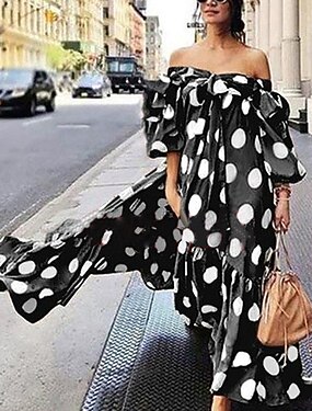 فستان نسائي كاجوال فستان سوينغ فستان طويل فستان ماكسي أسود أحمر بني بلا أكمام منقطة طباعة الخريف الخريف قبالة الكتف فضفاضة تناسب 2023 SML XL XXL XXXL 4XL 5XL