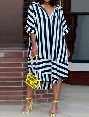 نسائي فستان طويل ماكسي شيرت دريس لباس غير رسمي لباس صيفي أنيق كاجوال عطلة مناسب للبس اليومي مواعدة عادي شريط نصف كم Lapel أسود أحمر أزرق الصيف الربيع