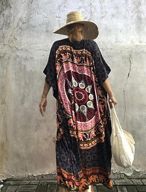 نسائي فستان طويل فستان شيفت فستان شكل حرف A كاجوال بوهو مناسب للبس اليومي مواعدة مناسب للخارج عادي الرسم هندسي تاي داي كم طويل رقبة عالية مدورة أسود الربيع الخريف الشتاء فصل الخريف