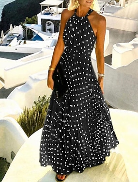 المرأة عارضة اللباس سوينغ اللباس البولكا نقطة اللباس فستان طويل ماكسي اللباس الشيفون اللباس مطوي أخضر أسود أزرق بلا أكمام طباعة الربيع الصيف الرسن الرقبة عطلة الشاطئ يوميا 2023 s m l xl