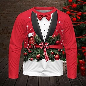 عيد الميلاد المجيد للصبيان 3D الرسم بابا نويل تي شيرت كنزة مطبوعة كم طويل الربيع الخريف موضة أساسي أطفال 4-12 سنة رقبة العمل الأماكن المفتوحة فضفاض مناسب للبس اليومي عادي