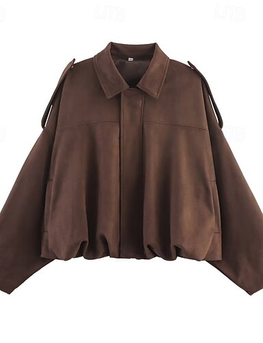 نسائي جواكيت جلد الدفء مريح سحاب كاجوال لون الصلبة عطلة شارع فضفاض مناسب للبس اليومي قصيرة Lapel عادي كم طويل ملابس خارجية أسود فوشيا كوفي الخريف الشتاء