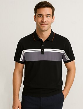 رجالي بولو ستايل تريكو بولو عمل فضفاض V رقبة كم قصير رسمي ألوان متناوبة بقع Buttons الصيف كل الفصول أسود أبيض كوفي بولو ستايل