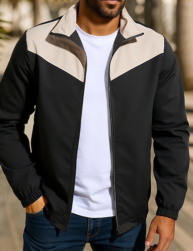 رجالي سترة خفيفة الوزن جاكيت كاجوال عطلة مناسب للبس اليومي ضد الهواء مضاد للماء جيب لصق او جمع الربيع الخريف ألوان متناوبة موضة كلاسيكي مرتفعة عادية أسود كاكي جاكتس