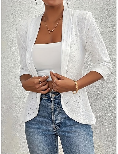 نسائي سترة مريح متنفس مقصوص أنيق موضة سهل عمل مناسب للبس اليومي عادية طوي عادي 3/4 الكم ملابس خارجية أبيض الربيع الخريف