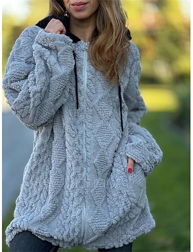 نسائي معطف شتوي سترة شيربا مريح متنفس سحاب جيب كاجوال سهل عطلة شارع فضفاض مناسب للبس اليومي سحاب قصيرة مع قبعة عادي كم طويل ملابس خارجية أسود نبيذ كاكي الربيع الخريف