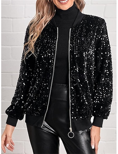 نسائي جاكيت شتوي مناسب للحفلات الأماكن المفتوحة شارع الخريف الشتاء عادية معطف عادي الدفء متنفس أنيق كاجوال جاكتس كم طويل سهل ترتر فضي أحمر ذهبي