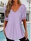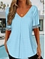 نسائي تي شيرت دانتيل مطرز سهل أنيق موضة الحديث كم قصير V رقبة قمصان عادية مناسب للبس اليومي عطلة نهاية الاسبوع أزرق وردي بلاشيهغ أرجواني الصيف الربيع