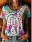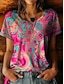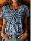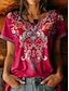 تي شيرت بوهو نسائي، رسومات زهرية، نباتات، عتيقة، أنيقة، غير رسمية، أكمام قصيرة، ياقة على شكل V، tops عادية، طباعة يومية، عطلة نهاية الأسبوع، مطرزة، أزرق، أزرق فاتح، أحمر، وردي، صيف، ربيع