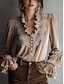 نسائي قميص مخمل قميص غير رسمي قميص مكشكش مطرز Buttons سهل أنيق كلاسيكي كاجوال كم طويل V رقبة قمصان عادية مناسب للبس اليومي مناسب للعطلات مناسب للخارج البيج الربيع الخريف