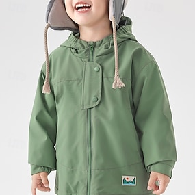 أطفال للصبيان جاكيت لرياضة المشي سترة خارجية ملابس خارجية لون الصلبة كم طويل سحاب جيب راحة مضاد للماء ضد الرياح معطف الأماكن المفتوحة موضة يوميا أخضر أزرق عميق الربيع الخريف 4 سنوات +