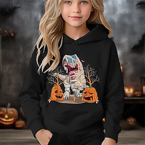 عيد الرعب للصبيان 3D قرع ديناصور هوديي كم طويل الربيع الخريف موضة أناقة الشارع أطفال 4-12 سنة مع قبعة الأماكن المفتوحة فضفاض مناسب للبس اليومي عادي