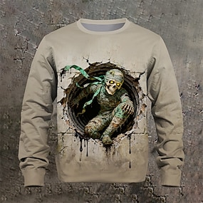 عيد الرعب للصبيان 3D الرسم تي شيرت كنزة مطبوعة كم طويل الربيع الخريف موضة أساسي أطفال 4-12 سنة رقبة العمل الأماكن المفتوحة فضفاض مناسب للبس اليومي عادي