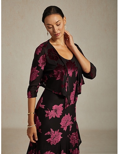 جاكيتات مخملية للنساء ، مزخرفة بالأزهار ، أنيقة ، عتيقة ، أكمام بطول 3/4 ، عنق V ، ضيوف الزفاف ، حفلة مسائية ، ملابس مسائية ، حفلة مسائية ، بني ، خريف ، شتاء