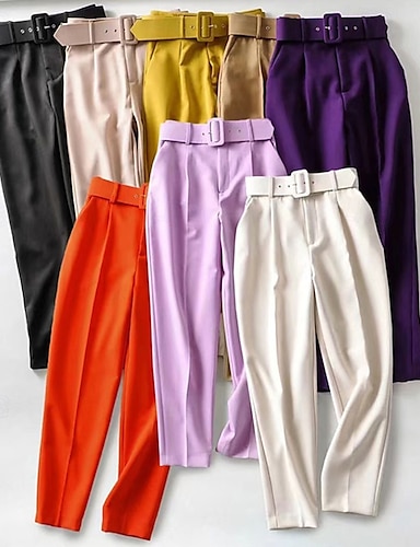 نسائي ساق عريضه تشينوز موضة أناقة الشارع مكتمل الطول خصر عالي سهل حزام مطاط مريح ناعم مرن نسبياً الأماكن المفتوحة شارع أسود أزرق مشمشي الربيع الخريف عادي