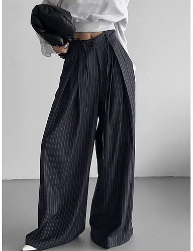 نسائي صفيق تشينوز موضة أناقة الشارع مكتمل الطول الخصر متوسط ورق مرونة الخصر مخطط مريح مرن نسبياً الأماكن المفتوحة عطلة شارع أسود رمادي أبيض أسود كاكي الصيف الربيع عادي