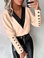 نسائي بلوزة سهل أنيق الغربي مثيرة بدون كم V رقبة قمصان عادية مناسب للعطلات مناسب للخارج Buttons أسود الصيف الربيع الخريف