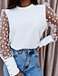 نسائي الدانتيل الربط الأعلى بلوزة بلوزات شيفون سهل أنيق كاجوال كم طويل أسقف رقبة عالية قمصان عادية مناسب للبس اليومي مناسب للعطلات مناسب للخارج دانتيل مكشكش بقع أسود أبيض الصيف الربيع الخريف