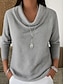 نسائي كنزة صوفية ورد كاجوال كم طويل رقبة عالية مدورة قمصان عادية شارع مناسب للبس اليومي فضفاض رمادي الربيع الخريف الشتاء