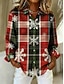 عيد الميلاد المجيد نسائي قميص بابا نويل أنيق كاجوال كم طويل قبعة القميص قمصان عادية عمل مناسب للبس اليومي مناسب للعطلات Buttons طباعة أحمر الربيع الخريف الشتاء